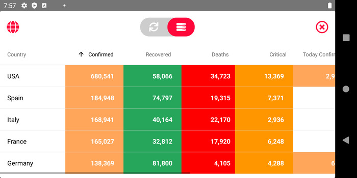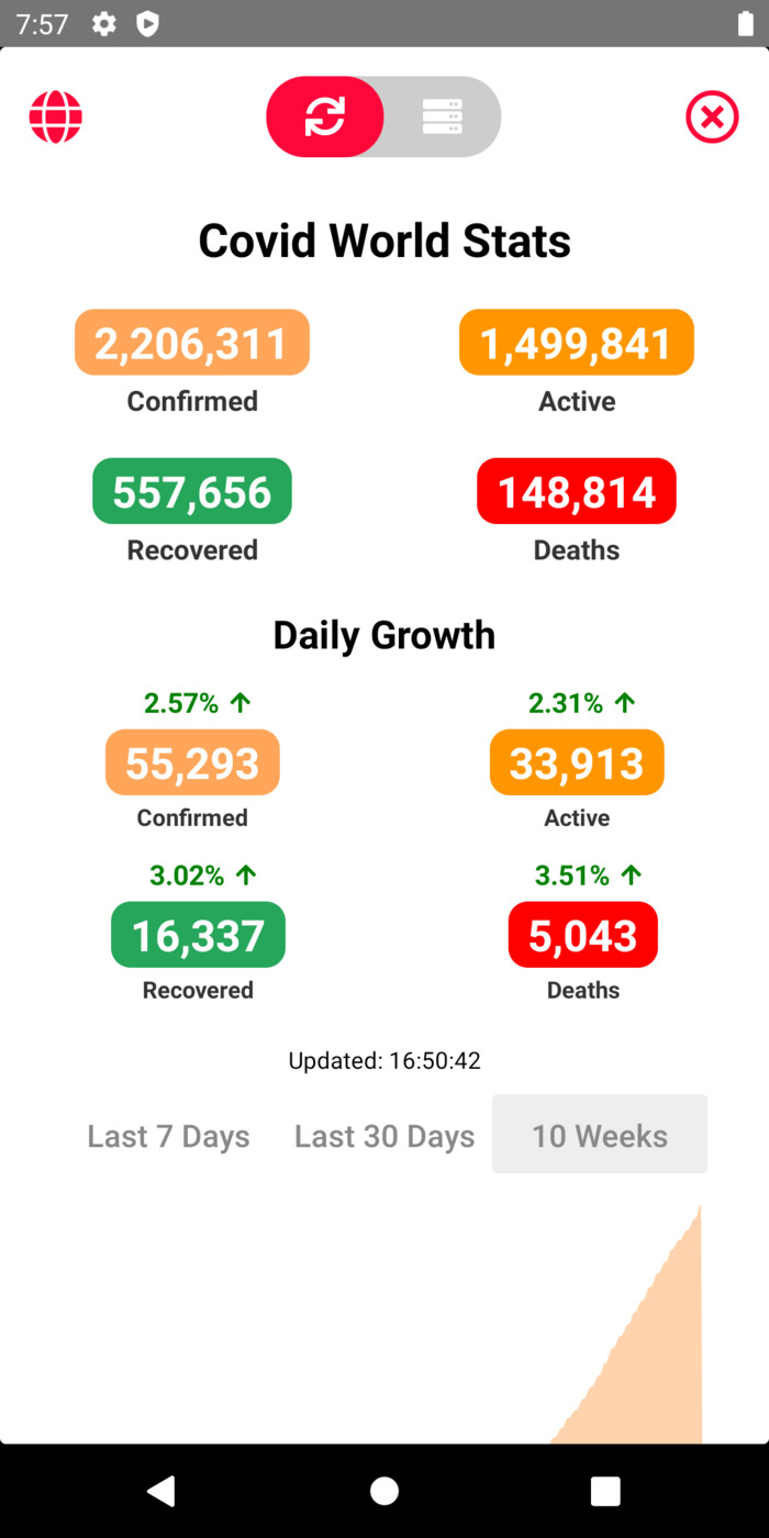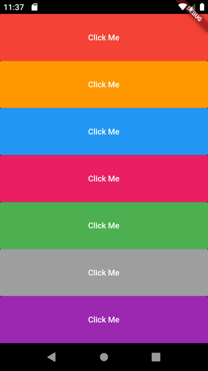 The app uses Listview to render a list of different buttons.