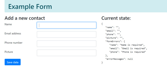 Created a form using ReactJS that includes a state management indicator and form validation.